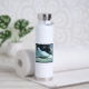 Une peinture numérique de Spirit Falls à Royalston, Massachusetts. Il y a une grenouille à taureaux assise sur la mousse qui regarde l'eau couler entre les rochers. En lettres blanches dans le coin supérieur est l'année où le Massachusetts est devenu un état, "1788", et dans le centre est, "Découvrez le sentier Tully, allez à l'ouest de Boston", et dans le bas est le nom de l'état. Une bordure bleu foncé finit le tableau. Copyright ©2023 Kimberly J Tilley.