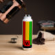 Bright Rasta flag coloured green, yellow and red striped water bottle. It features a monogram square on the front where you can add your own initial