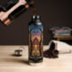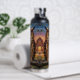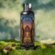 A owl themed water bottle that features a striking Great Horned Owl, rendered in a rich, thick impasto oil painting style. The vibrant textures and warm sunset backdrop create a cozy, rustic atmosphere that is perfect for nature lovers and art enthusiasts alike.