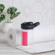 Les rayures verticales sont différentes dans les tons roses. Le texte blanc est pour votre nom ou monogramme.