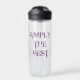 Bouteille d'eau avec le texte "Simply Best" dans le style de police urbaine grungy violet