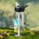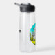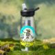 Bouteille d'eau personnalisée bleu et vert avec une vibe rétro vintage avec un squelette dans un disque de sunhat golf dans les bois.