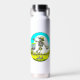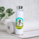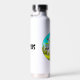 Bouteille d'eau personnalisée bleu et vert avec une vibe rétro vintage avec un squelette dans un disque de sunhat golf dans les bois.