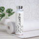 Un amusant motif de pois accentue le fond de cette bouteille d'eau personnalisée avec votre nom imprimé verticalement en lettres chic des deux côtés.