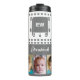 Personnalisez ce tombeur thermique avec des initiales et un nom. Remplacez les neuf photos par les vôtres. Un collage photo cadeau de voyage en gris et blanc. Gardez vos boissons chaudes au chaud et vos boissons cool au cool.