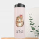 Ce mignon hérisson girly vous regarde ! Facile à customiser avec un nom, ce design présente un hérisson doux dans un style aquarelle graphique avec des éléments floraux et une typographie simple.