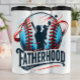 Ce graphique dynamique sur le thème du baseball célèbre la paternité, avec la silhouette d'un père tenant un jeune enfant, qui porte un casquette de baseball et un gant prêt à l'attraper. Le père tient une chauve-souris, le tout enfermé dans un baseball classique avec une couture rouge vibrante et des lignes de mouvement bleues. Le mot "paternité" est audacieusement écrit ci-dessous, idéal pour les papas amateurs de sport.