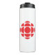 Créé par la firme suisse-canadienne de design Gottschalk + Ash, dans une nouvelle révision du "bijou" de Burton Kramer. La couleur rouge représente le Canada de façon symbolique, la forme rayonnante respecte l'ADN de la marque CBC et ne se perdra pas dans la traduction. Les Canadiens reconnaîtraient encore qu'il s'agit du logo de la SRC et de l'amélioration de la structure — moins de pièces visuelles et de couleurs — qui s'adaptent à plusieurs écrans, lisibles sur un téléphone portable, un ordinateur portable ou sur papier et moins encombrants visuellement. Utilisé à partir de 1992 - aujourd'hui.