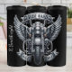 Cette image présente une illustration métallique détaillée de l'extrémité avant d'une moto, flanquée de grandes ailes de conception complexe. Les bannières au-dessus et au-dessous de la moto affichent les expressions "RIDE HARD" et "RIDE FREE". Les tons gris et argenté monochromatiques confèrent à l'oeuvre un emblème classique ou un aspect badge.