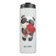 Paruline thermique avec un adorable dessin aquarelle. Un adorable ours de panda noir et blanc portant un bouquet de roses. Gris avec arrière - plan pois blanc.