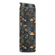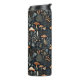 Ce design fantaisiste présente des champignons de tabouret en terre cuite sur un arrière - plan bleu marine foncé avec baies de forêt et faune.