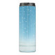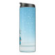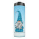 Généome mignon en costume bleu avec flocons de neige sur arrière - plan bleu