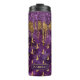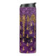 Halloween Gold et Purple Parties scintillant Drip Tumbler avec un motif sorcier or sur un arrière - plan couleur violet et nom personnalisé modèle.