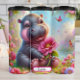 Un bébé hippopotame chéri aux joues roses et aux grands yeux innocents est niché dans un jardin luxuriant débordant de fleurs roses, violettes et oranges vibrantes. De délicieux papillons flottent autour, ajoutant à l'atmosphère enchanteresse que l'hippo heureux berce doucement une grande fleur rose, rayonnant de joie et de douceur pures.