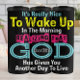 This grateful design states "It's Really Nice To Wake Up In The Morning REALIZING THAT GOD Has Given You Another Day To Live." "To Wake Up" is in yellow, "REALIZING THAT" is pink, and "GOD" is a prominent teal. The text emphasizes appreciation for each new day as a divine gift.