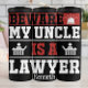 Ce t-shirt audacieux et humoristique "Méfiez-vous de mon oncle est un avocat" est parfait pour toute personne fière de ses cravates familiaux légaux. Avec un texte rouge et blanc frappant sur le noir, il fait une déclaration forte et drôle. Grand comme un cadeau ou ajoute du flair et de la personnalité à n'importe qui.