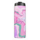 Art fluide marbré en bouteille d'eau d'art rose, violet et vert menthe. Ajoutez des initiales dans la zone de personnalisation.