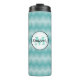 Ce chatouilleur thermique séduisant a un arrière - plan de rayures de chevron turquoise clair et sombre. À l'avant centrale se trouve une bannière blanche de nom de cercle bordée de noir, avec un cadre intérieur de points turquoises. Votre monogramme est turquoise à la lumière au centre, et votre nom est écrit sur le monogramme. Classique et joli !