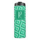 Sirotez votre boisson préférée à partir de ce Monogramme vert à trois tons diamant Motif Thermal Tumbler. Il dispose d'un motif en diamant géométrique dans trois tons de vert avec une initiale en vert clair contre un carré vert foncé. Personnalisez-le avec votre initial. Une excellente idée cadeau pour l'amoureux du café dans votre vie.