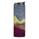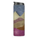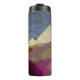 Un paysage abstrait aux couleurs et textures uniques, où l'on retrouve une scène montagnarde dans les tons violet, tan, beige et marron.