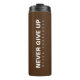 Personnalisable Ne jamais abandonner Ne jamais abandonner Texte Élégant Moderne Simple Motivationnel Réussite Citation Modèle Ajouter Texte Télécharger Image, Télécharger Photo ou Logo d'entreprise, Nom de l'entreprise Promotional Brown & Blanc Classic Thermal Tumbler.
