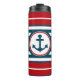 Design nautique avec décoration d'ancre en forme ronde sur arrière - plan rayé rouge, bleu et blanc