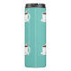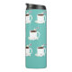Un nom personnalisé Température de Noël avec un thème chocolat chaud. Ce tumbler présente un motif de tasses souriantes de cacao chaud avec un sucre de canne et plusieurs guimauves joyeuses sur un arrière - plan turquoise. Il suffit de customiser le nom, d'ajouter ce tumbler à votre panier, et d'avoir un joyeux Noël! Chocolat chaud Nom Turquoise Noël Thermal Tumbler Sweetsham Food Art | ©Melissa Patton - Artiste/Illustrateur