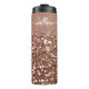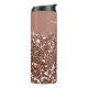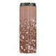 Tumbler or rose personnalisé avec un arrière - plan parties scintillant, nom personnalisable et modèle monogramme. Créez un cadeau d'anniversaire réfléchi et unique, une faveur de la fête de la bachelorette, ou un cadeau de la journée de la mère avec un chevalet en or rose élégant portant son nom.