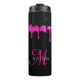 Parties scintillant à goutte noire et rose chaud Monogramme Thermal Tumbler