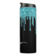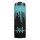 Monogrammed Black White et Turquoise Parties scintillant Drip Tumbler avec nom de script de calligraphie modèle.