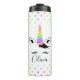 Le joli tombeur thermique Pastel Unicorn, conçu par Enchantfancy Design Company, présente un visage de licorne sucré avec de gros cils et une corne d'unicorne d'arc-en-ciel pastel. Un motif d'étoiles pastel en arc-en-ciel met l'accent sur le arrière - plan. Personnalisez avec votre choix de nom !