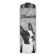 Un tourbillon thermique brillant d'argent avec un mignon chiot Boston Terrier. Ce tumeur est parfait pour l'amoureux des animaux de votre vie qui aime leur chien. Customisez le tumeur avec n'importe quel nom. Il présente un adorable Boston Terrier et est un cadeau parfait pour l'amoureux des chiens.