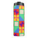 Cette bouteille thermique a un design Bauhaus de carrés avec des formes étranges à l'intérieur, répété à travers le design.