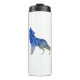 Cette conception est le contour d'un loup hurlant avec un dégradé de couleur bleu à beige et la silhouette d'un arbre à l'intérieur.