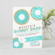 L'Invitation à la fête d'anniversaire de la Boutique de beignets bleus aidera à donner le ton à une célébration douce pour toute personne qui aime les beignets des enfants et des ados aux adultes. Cet invitation de 5 po x 7 po présente des beignes bleus avec des arrosages de chocolat et des beignets bleus avec une bruine de glace blanche. N'oubliez pas de faire cravate au thème de la fête des beignes avec la coordination des fournitures de la fête conçue par Enchantfancy Design Company.