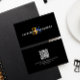 Elegante Boutique Visitenkartenvorlage mit QR-Code und chunkigem Retro-Schriftart. Das Schwarz-Weiß-Design ist im Trend und klassisch. Dieses Visitenkarten-Design ist einfach anzupassen, einfach fügen Sie Ihr eigenes Logo und Business QR-Code. Bestellen Sie JETZT, um Ihre Marke zu fördern und zu erhöhen.
