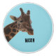 Custom Name, Giraffe, looking down, sky blue background