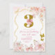 Bow Coquette Pink Butterfly Third Birthday Einladung