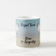 Eine Tasse zum Thema Küstenstrand mit einer spielerischen, lustigen, lichtdurchfluteten Drehung von Royal Terns an einem Strand, der scheinbar bowing, Bow to Royalty! Ein Royal Tern Seevögel pflückt und prächtig an einem sonnigen Sandstrand. Dieser fotografische Vogel wurde an der Küste Floridas gefangen genommen. Kann mit einem Namen personalisiert werden. Das ist die originale Vogelfotografie von JLW_FOTOGRAFIE.