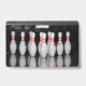 Ein Namensschild mit einem Rack von Bowling-Buttonen. Eine tolle Idee für Bowling-Mitarbeiter.