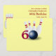 Vous pouvez personnaliser tout le texte de cette 60e invitation à la fête d'anniversaire sur le thème du bowling. Vous pouvez changer le texte et le numéro sur le devant et l'utiliser pour un 40e, 50e, 70e ou autre anniversaire. Le design comprend une boule de bowling avec des épingles et la boule faite pour ressembler à zéro sur 60 à l'avant. les couleurs jaunes et rouges qui peuvent également être changées en couleurs préférées.