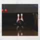Ein Etikett für eine Schaumweinflasche mit einem Foto von zwei Bowling-Buttonen.