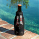 Eine Flasche cooler mit einem Foto von zwei Bowling Buttonen, mit einem Ball, der kurz davor ist, sie niederzuschlagen.