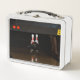 Eine Lunchbox mit zwei Fotos Bowling Buttonen.