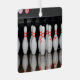 Ein Metallschmuck mit einem Foto von Bowling-Buttonen.
