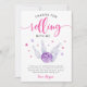 Niedliche Bowling Thema Mädchen Geburtstagsfeier Dankeschön-Karte mit Aquarellbild einer Bowlingkugel trifft einige Buttone mit rosa und lila Sternen herum. Im Text steht: "Danke, dass du mitgemacht hast."