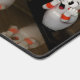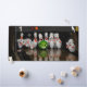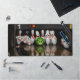 A desk mat featuring a photo of bowling pins turned into caricatures.