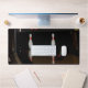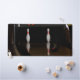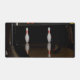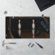 Eine Schreibtischmatte mit einem Foto aus Bowling-Buttonen und einem Bowlingball.