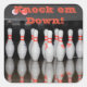 Ein Aufkleber mit einem Rack von Bowling-Buttonen und den Worten Knock em Down. Kann angepasst werden.