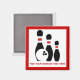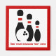 Bowlingkugel und Buttone, der eigene Magnet, der ein minimalistisches Symbol von drei schwarzen Bowling-Buttonen mit roten Streifen, eine Kugel und Ihr Text auf weißem Hintergrund mit rotem Rand. Personalisieren Sie es und ändern Sie Text mit Monogramm, Namen oder Ihrer Nachricht. Die perfekte Geschenkidee für den fanatischen Bowler und den Bowling Liebhaber.